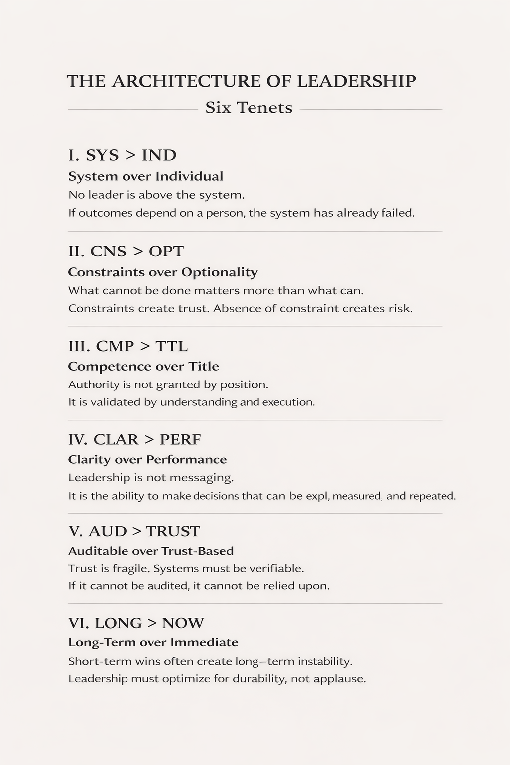 Leadership is often misunderstood because people reduce it to personality, visibility, or charisma. In reality, leadership behaves more like architecture. It is something that must be designed, constrained, and tested before it is ever relied upon. When it is built incorrectly, it does not fail immediately. It fails under pressure, and when it does, the cost is carried by everyone else.