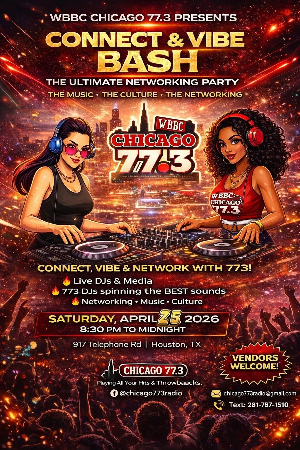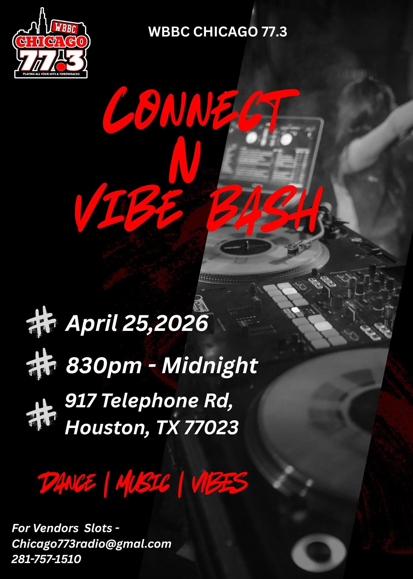 This yearโs Connect & Vibe Bash brings that vision directly into the room. Set for April 25, 2026, in Houston, Texas, at 917 Telephone Road and starting at 8:30 PM, this is more than a celebration; it is an activation. Live DJs, media presence, and a full convergence of music, culture, and networking create an environment where people are not just attending, but participating. The energy is designed to move through sound, through conversation, and through the kind of interactions that donโt happen online.