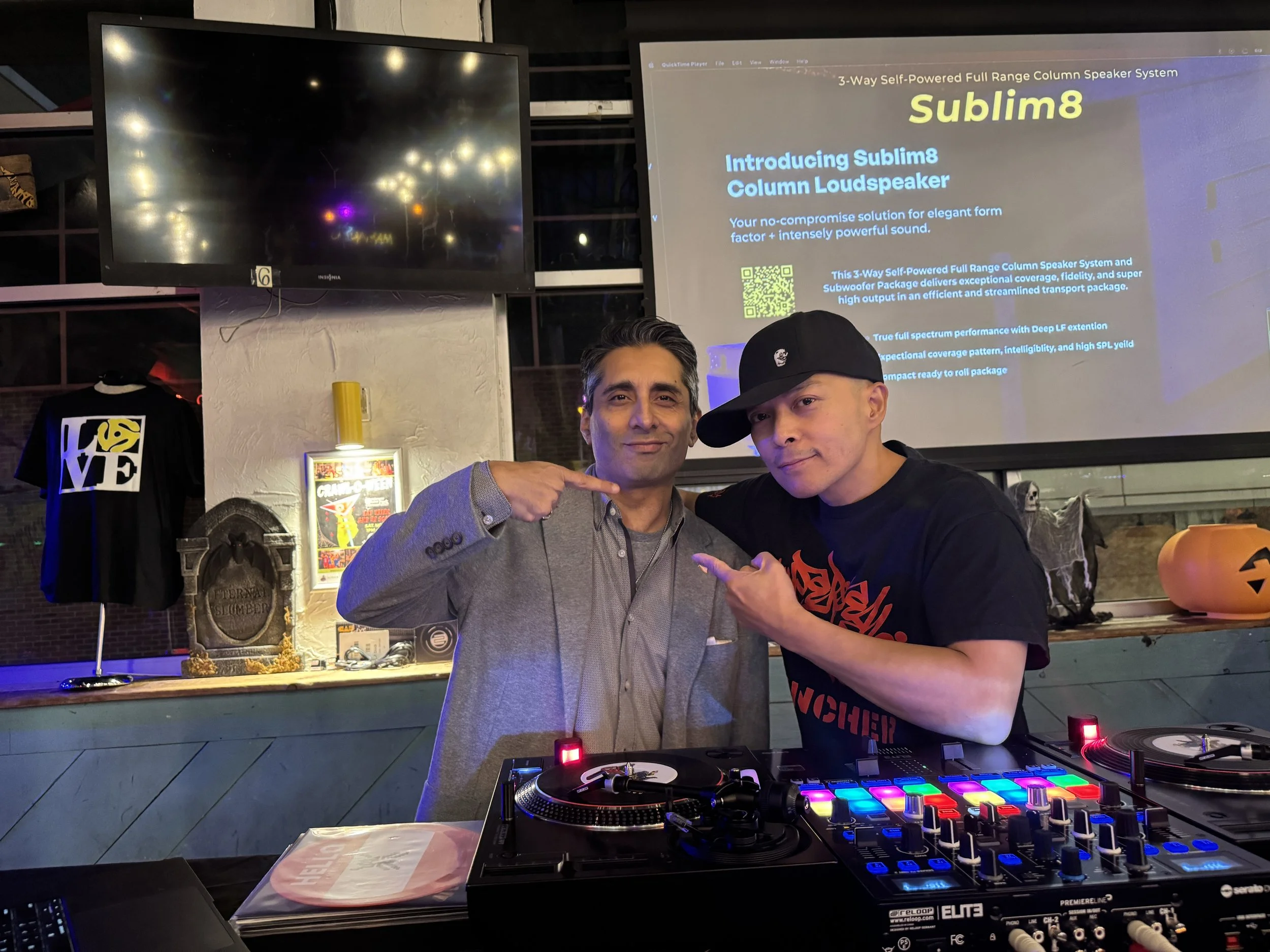 Tonight, on October 21st, the M and Show went to Rosemont and Adobe Gilas as the big homie, KC had another USDJ Chicago Meetup, this time with DJ QBert and DJ Don Carlo. Hosted by World DMC Champ DJ QBert, we joined a myriad of Chicago DJs, from DJ Speed to DJ Marz of Charizma, for a demonstration of the new Reloop RP-7, 7โ Turntable, as well as the newest speakers from BassBoss, which were officially released on 10/10/2025. This was one of the first opportunities in the country for anyone to hear these live, and called the Sublim8 Column Loudspeakers. These were sick!